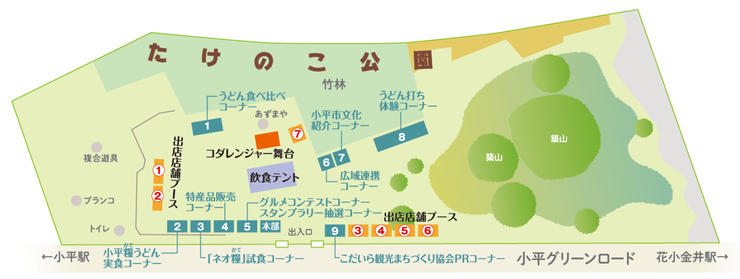 | 開催場所 | たけのこ公園(小平市花小金井7-9-10) 西武新宿線 花小金井駅 から徒歩20分 西武新宿線 小平駅から徒歩20分 ※駐車場はございません。 |